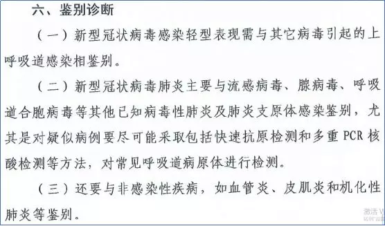 為了更迅速有效地區分新冠肺炎病人和其他呼吸道病原體感染病人,在2月18日國家衛健委最新發布的《新型冠狀病毒肺炎診療方案(試行第六版)》中細化了鑒別診斷的內容,強調針對疑似病例要盡可能采取包括快速抗原檢測和多重PCR核酸檢測等方法對常見呼吸道病原體進行檢測,將不同感染患者加以區分。