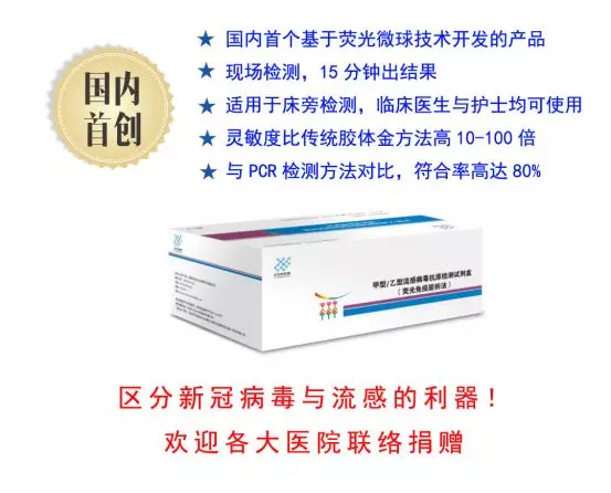 我們意識到流感是常見的呼吸道疾病,經常造成大面積爆發,導致人員死亡和不可估量的經濟損失,因此我司運用豐富的呼吸道病原體研究和產業化經驗,通過多年的不懈努力,成功研發出高靈敏度、高特異性的流感抗原檢測試劑盒。此試劑盒采用熒光免疫層析法,是《流行性感冒診療方案(2019年版)》中推薦的檢測方法,此方法既有膠體金法快速簡便的優勢,又比膠體金法靈敏度更接近于PCR方法的靈敏度,與PCR法的符合率可高達80%!是理想的流感檢測產品,也是區別流感與新型冠狀病毒的利器。該產品為抗擊此次新冠疫情形成了更加完整的檢測方案,也為日后呼吸道傳染病的常規檢測奠定了堅實的技術基礎。