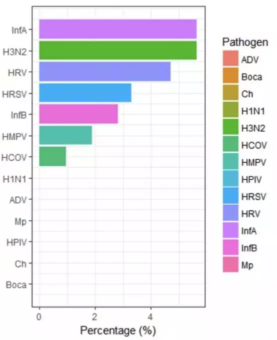 18種病原體:新型冠狀病毒2019-nCoV,冠狀病毒(HCoV-229E、HCoV-OC43、HCoV-NL63、HKU1)、甲型流感病毒、乙型流感病毒、呼吸道合胞病毒、腺病毒、副流感病毒(I型、II型、III型)、鼻病毒、人偏肺病毒、博卡病毒、百日咳鮑特菌、肺炎衣原體、肺炎支原體。