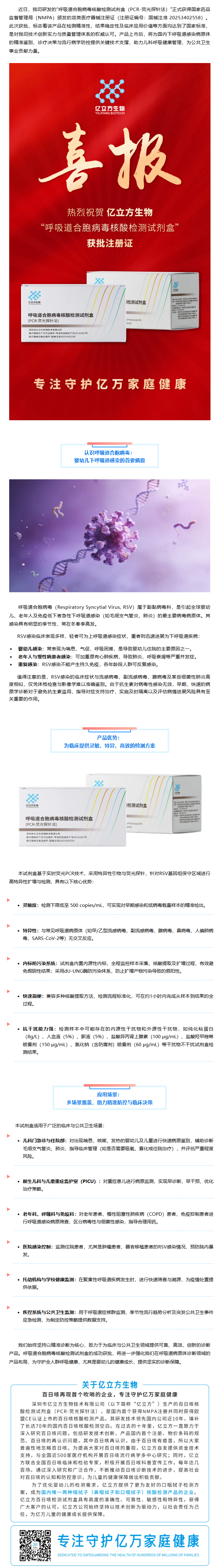 喜報 | 精準診斷,守護呼吸!熱烈祝賀億立方生物“呼吸道合胞病毒核酸檢測試劑盒”獲批Ⅲ類醫療器械注冊證!