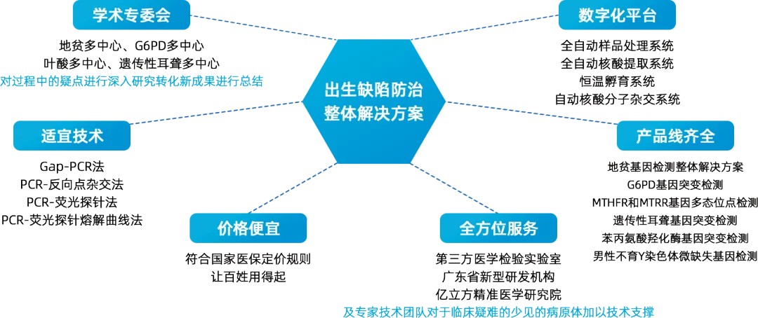 “早發現、早預防、早治療”是目前出生缺陷防治的指導原則。開展基因組學檢測目的是從源頭上預防出生缺陷的發生。億立方是在新時代背景下成立的一家國家高新技術企業,十年如一日的堅守與付出,形成了出生缺陷整體解決方案。
