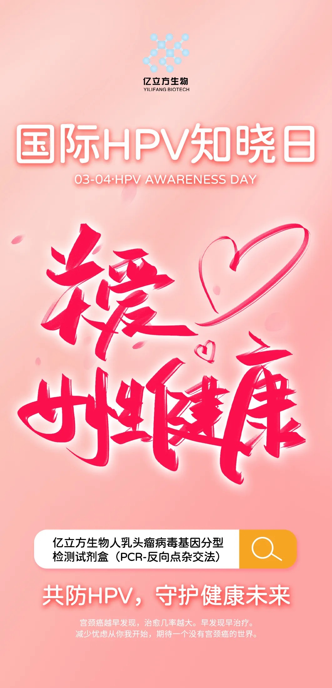億立方是在新時代背景下成立的一家國家高新技術企業,十年如一日地堅守與付出,形成了HPV檢測整體解決方案:一臺設備,對接一個技術平臺的產品。從采樣到結果輸出實現全自動化、信息化。提供最全面、最有效、最簡便、最經濟的整體解決方案。