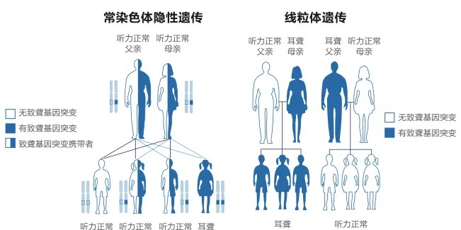 遺傳性耳聾指的是由于基因和染色體異常所致的耳聾。這種疾病是由父母的遺傳物質(zhì)(包括染色體及位于其中的基因)發(fā)生了改變傳給后代而引起的耳聾,是人類最常見的感覺神經(jīng)系統(tǒng)缺陷之一。不論父母方的單方或雙方是耳聾患者還是健康攜帶者,耳聾基因都會通過父母向子女遺傳。