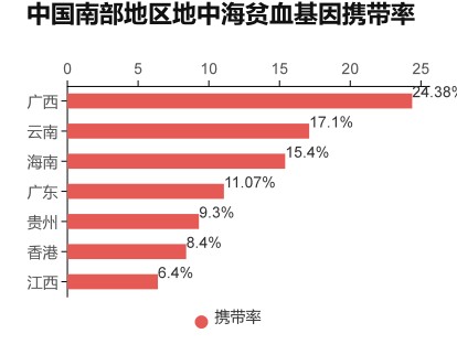 地貧是全球分布最廣、累及人群最多的一種單基因遺傳病,全世界每年有超過5萬名地貧患兒出生,該遺傳疾病多發于地中海沿岸、非洲和東南亞地區,具有明顯的地域分布差異和種族特征。調查數據顯示,我國中間型和重型地貧患者約有30萬人,地貧基因攜帶者高達3000萬人,其中長江以南地區為地貧的高發地區,尤以兩廣地區最為嚴重。其中廣西地區地貧基因攜帶率高達24%;廣東地區則高達11%。